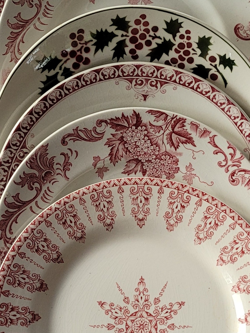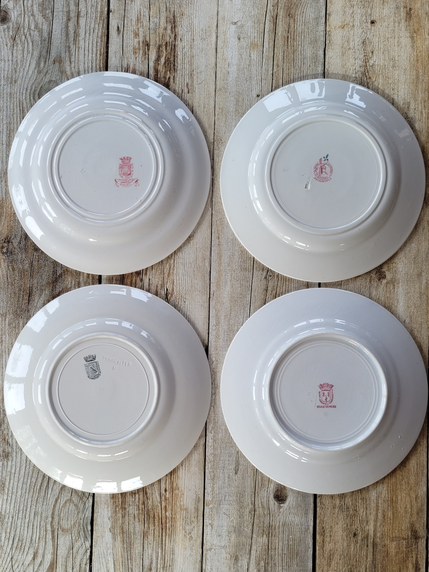 Ces assiettes sont anciennes et peuvent présenter des signes d’usage et du temps, comme des petites taches ou des petites rayures d’usage