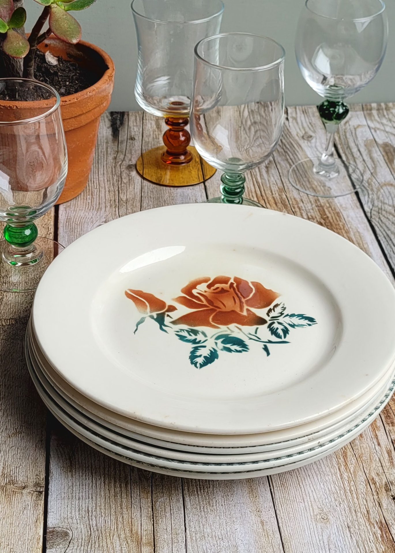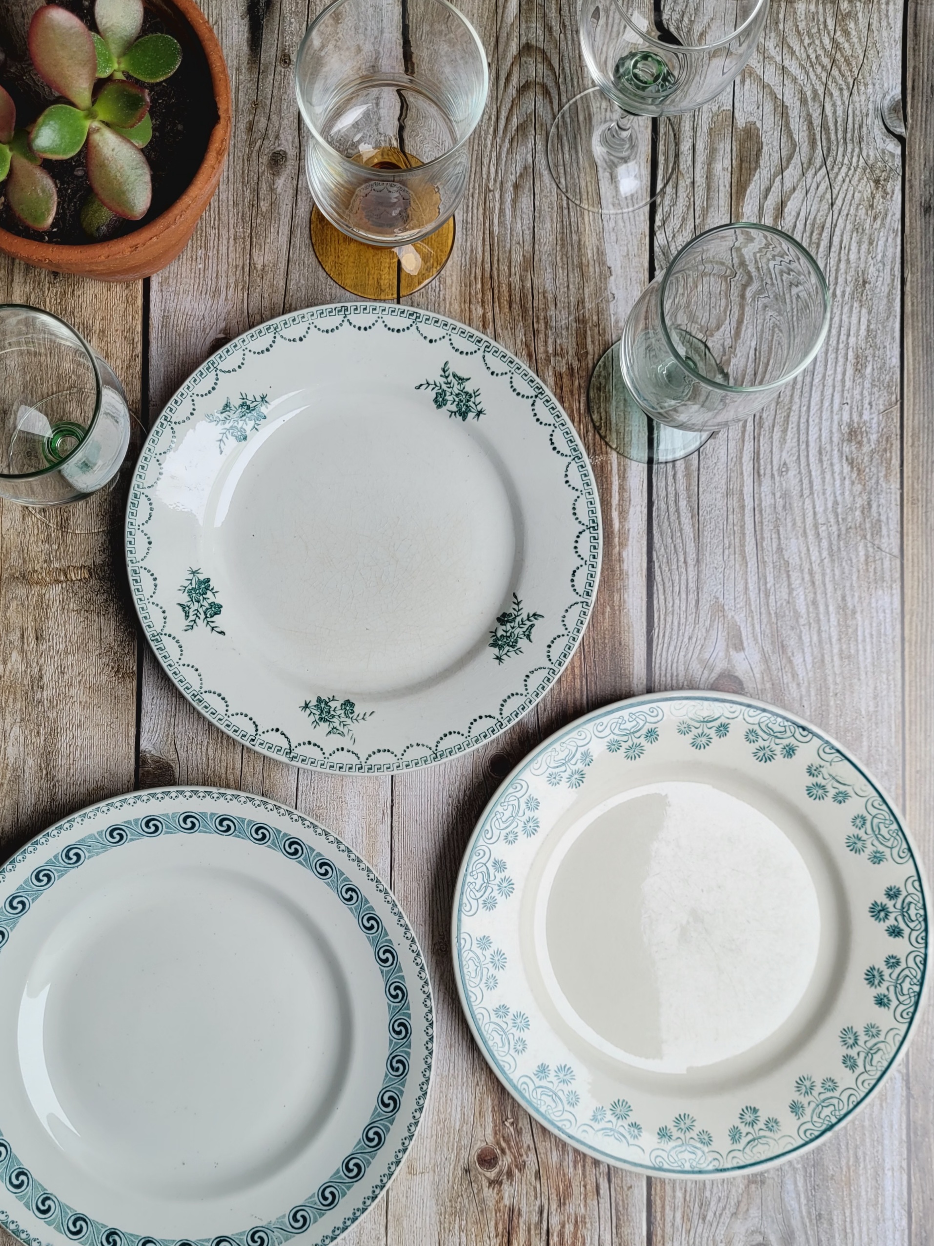 Ensemble de 6 assiettes plates pour composer une jolie table dans des tons verts et sépia