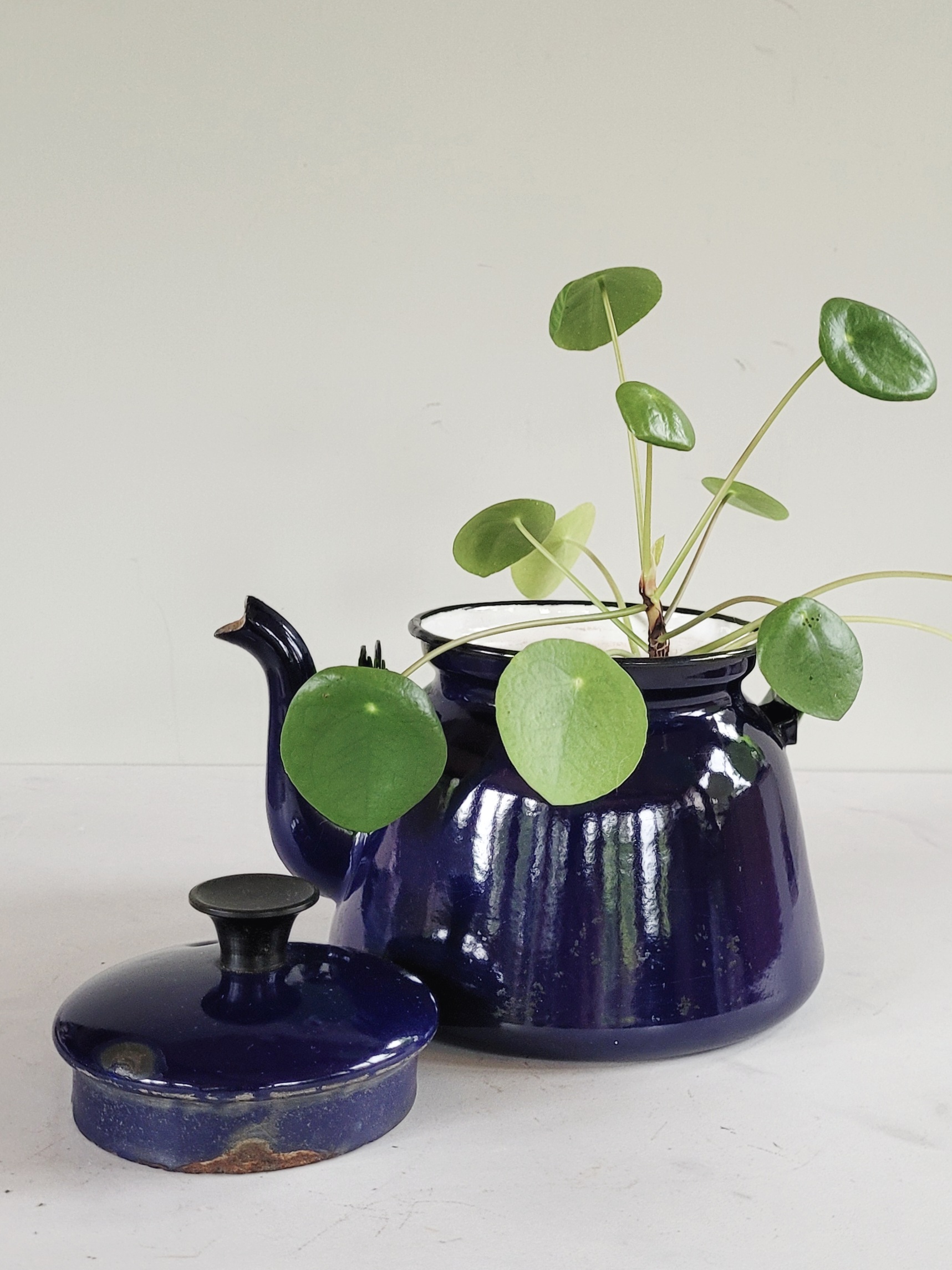 Théière vintage en tôle émaillée