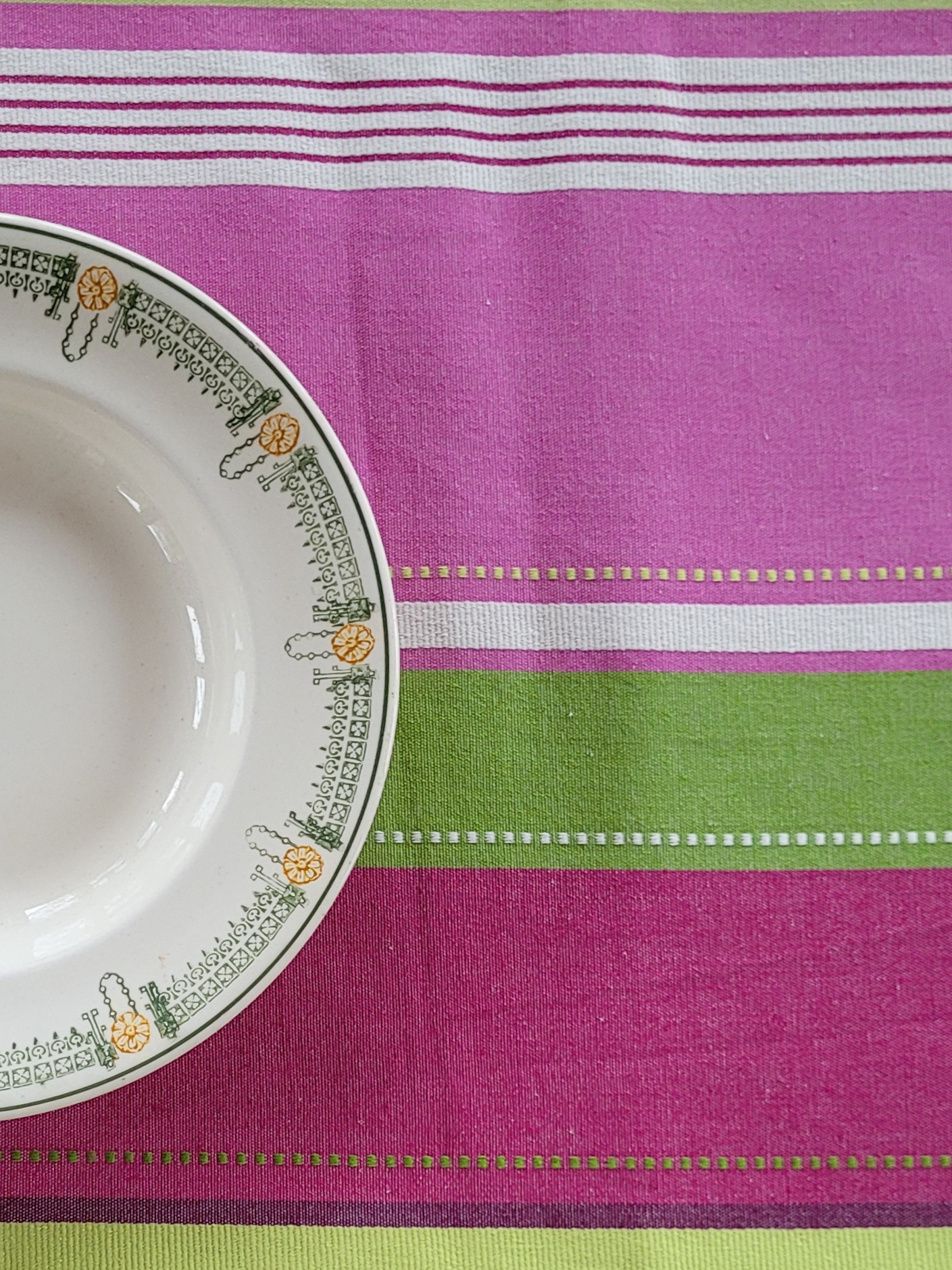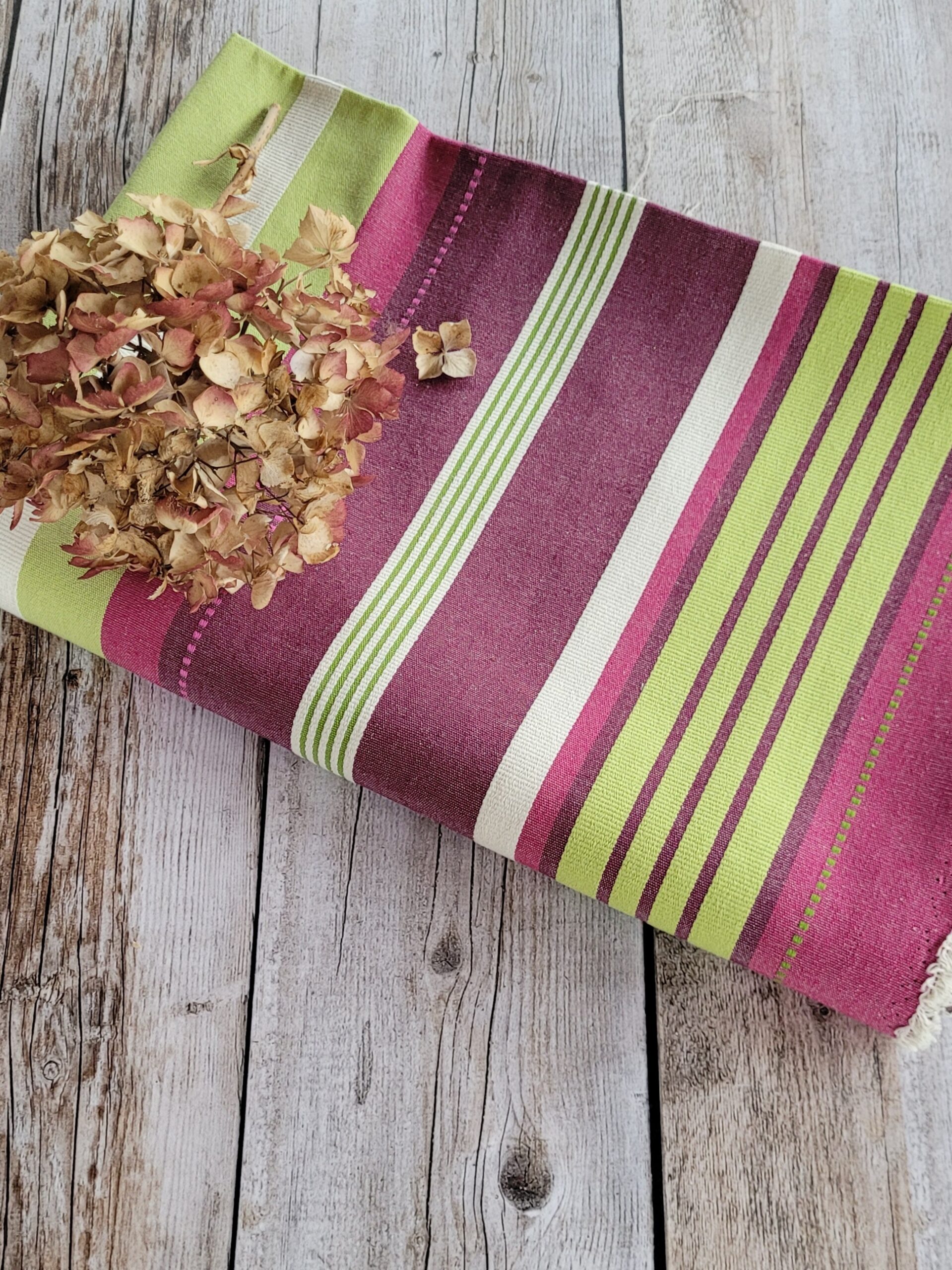 Rayures texturées anis, blanc, aubergine et rose